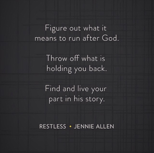 Before we know where to run, we have to know where we are. Where are we starting? I love that Jennie lays this out for us. She gives us four starting places and she even shares some questions that she and others have asked in these places. Let’s take the time to really pray and dig in about where we are. Just know that wherever you are, God loves you. And there are people all around you who love you ready to cheer you on, fill you up, give you a drink of water and catch you when you fall along the way. I know I am THIRSTY and not RUNNING FREE but I was. So I’m mostly thirsty because I know I need to get back in the race. I’m just not sure how to do that right now. No matter where we are…I’m sure we are all a little hurt. All in different areas. Take heart friend.