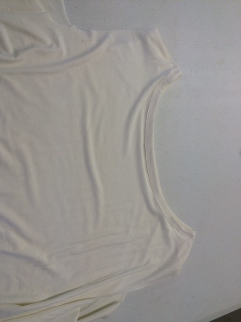 The thing about me and sewing is that I have crazy unrealistic expectations when it comes to timeframes, and getting things done. But how hard could it be to make a jersey t-shirt in two days?! So, I call mom and tell her we are doing a sewing project Wednesday and Thursday and she says great. I arrive with my pattern and fabric, tell her how I want to alter it (crazy) and she in true form says we need to make a “sample”. A sample is basically a trial run so you don’t ruin any good fabric. The sample was a nightmare! The fabric was even harder to work with than jersey (what?!) and we couldn’t get the alterations I wanted to work. So we gave up and said we would start on the real thing the next day.(Which gave us one day…precisely four hours to complete the shirt.) We decided to follow the pattern exactly, except make it short sleeves. We also adjusted the sizing because the sample seemed too small so we decided to make it in the biggest size the pattern allowed.