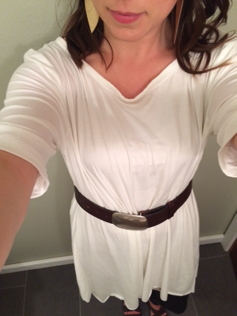 Yes…its a dress. Not a shirt! In a hilarious turn of events we apparently messed up the sizing, but I told myself if this thing turned out looking anything better than a trash bag…I would be happy. And I LOVE IT! I worked so hard on this thing, I will wear it forever. Also, you will notice those beautiful gold earrings. I EARNED wearing those last night for my birthday dinner. They are amazing, Fair Trade from 5 Pound Apparel.